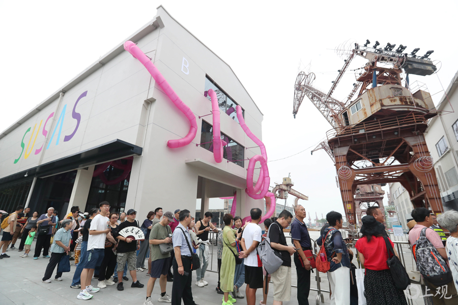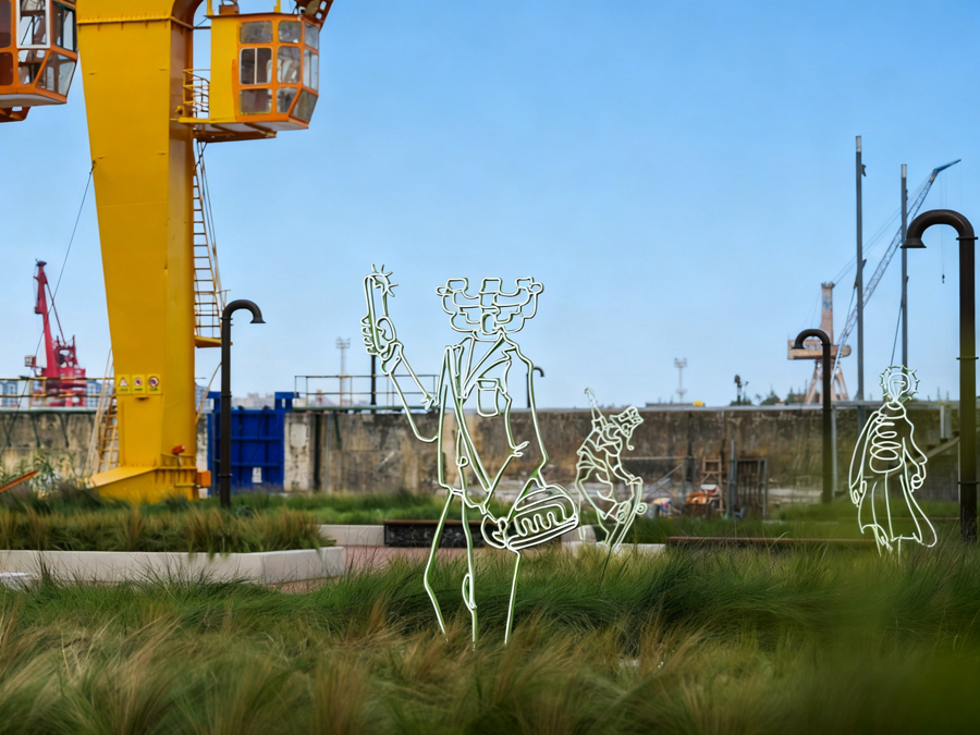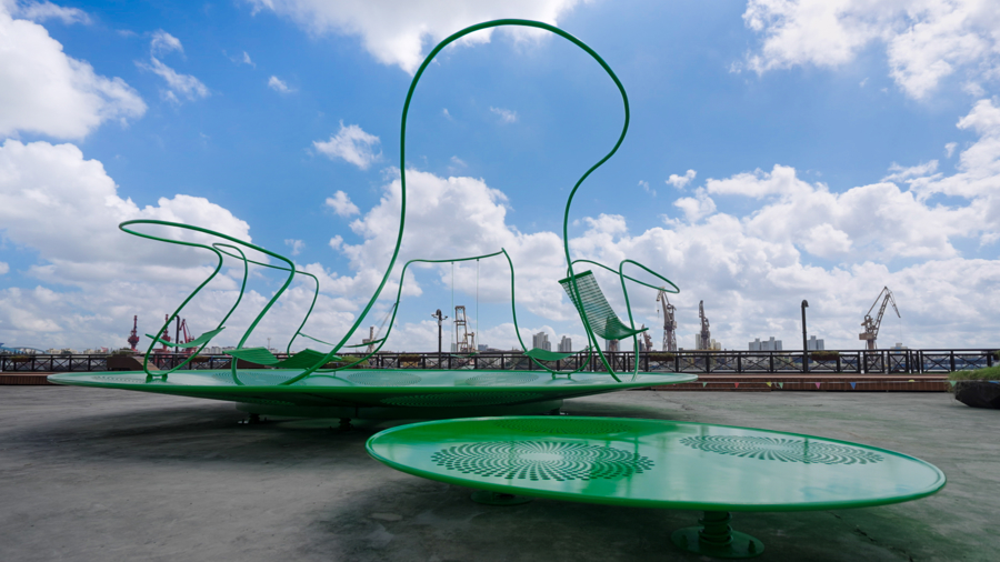 Tango告诉记者,如果说周身的工业遗存给人以厚重、硬朗的视觉感受,那么,他希望通过自己的创作,为整个场地注入一股“柔性的力量”——让工业风与想象力并存,让观众怀抱一种轻松、愉悦、温暖的心情,与周身的城市风景展开对话。